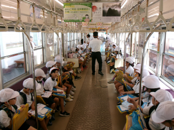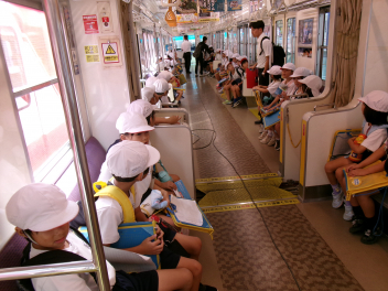 電車内では、クイズを交えながら遠鉄電車のことを楽しく教えてもらいましたwink