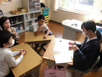「ぼくはしゃてきがいいな」「フィリピンのお面とかおもしろそうwink」など、どうしたら来てくれるお客さんが楽しんでもらえるのか、いろいろな意見を出し合いましたsad