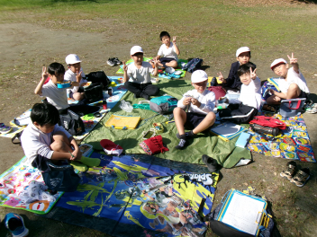 最後に八幡神社で昼食休憩、その後は学級遊びをしました