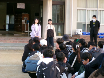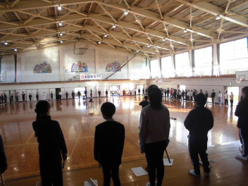 出発式では、修学旅行に向けてわくわくする気持ちを抑えつつ、実行委員の司会や話にしっかりと耳を傾け、式を行いました。