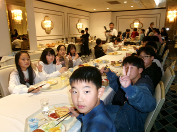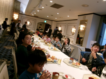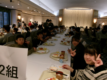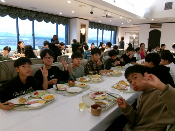 ホテルでは、しっかりと早起きをし、眺めの良い朝食会場で、同じクラスの友達と楽しくご飯を食べました。