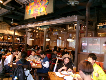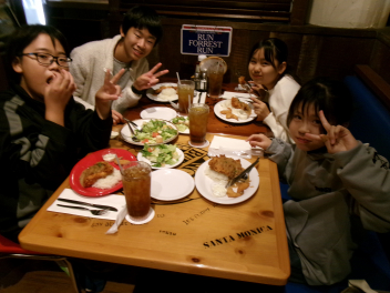 修学旅行最後の目的地は、ババガンプシュリンプです。クラスの友達と再会し、それぞれのコース別の活動の話をしながら、おいしいご飯をいただきました。
