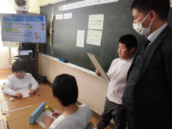 黒板やテレビ画面、教室のドアなど巻き尺を使いながらいろいろなものの面積を測りましたsad