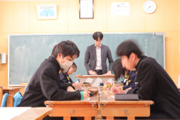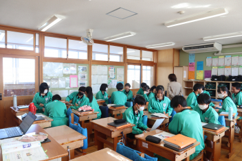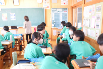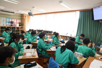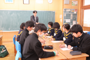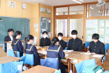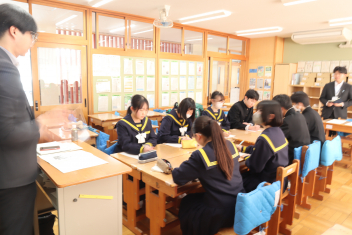 •  2月17日(火)午後、道徳の授業で1年8組では、生き物の命について考えました。殺処分をされてしまうペットの命と私たちが食べ物としていただく生き物の命があるなかで、命の重みにどう違いがあるのか、ないのか等、話し合いました。命は大切だということは十分理解しているものの、今後の生活で生き物の命についてどう考えていくのか自問していました。