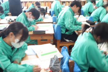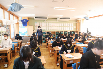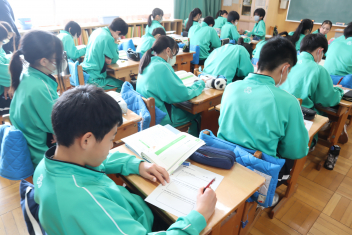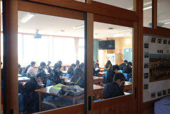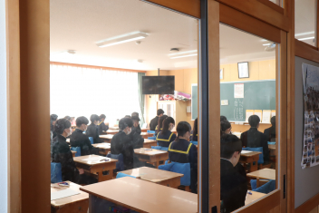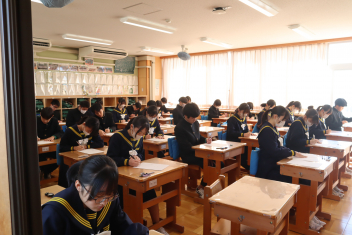 •  2月16日(月)、学年末テストの追加実施を行いました。先週、インフルエンザ等でお休みをした生徒たちが対象で、みんな一生懸命に取り組みました。まだ、体調が回復せず欠席が続き、今回受けることができなかった生徒は、また登校した際に実施します。
