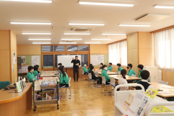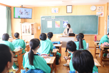 •  2年生の英語科では、比較級moreや最上級mostの学習をしています。2年7組では、ポスターの魅力を伝える英文から、何を一番推しているのか、読み取っていました。どのポスターが自分として最もよいか選ぶことで、英語表現の違いを学んでいました。