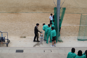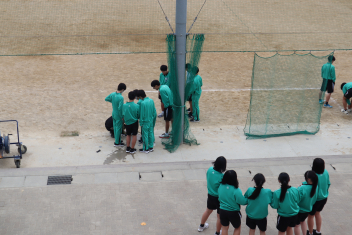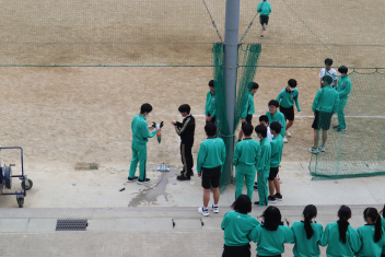 •  3年生の理科では、作用と反作用の学習の一環で、水に圧力を掛けてペットボトルを飛ばす「ペットボトルロケット」を行っています。生徒たちは、むきになってペットボトル内の水を圧縮させますが、ちょうどよい加減が必要なようでした。うまくいくと50mくらい勢いよく飛んでいました。