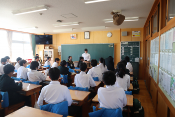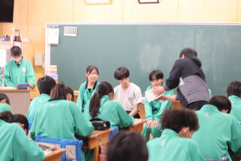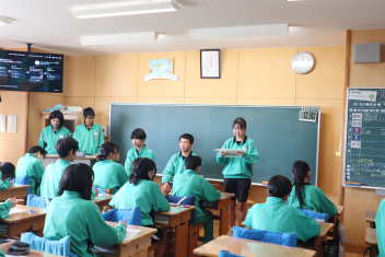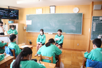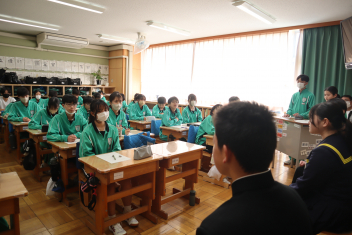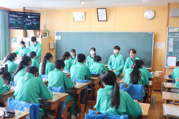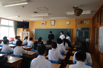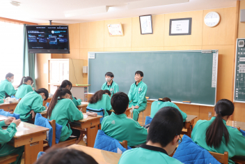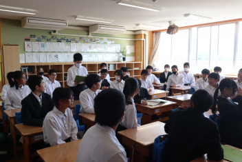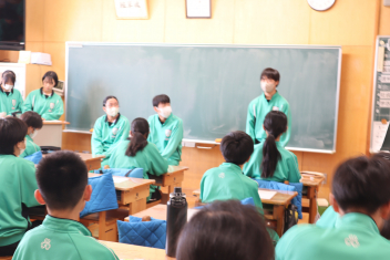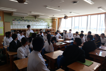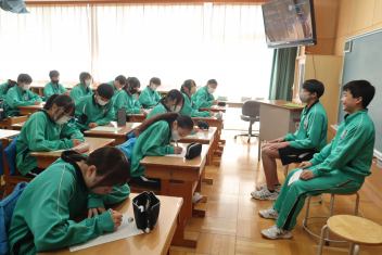 •  3学期も終盤を迎えています。各クラスの帰りの会は、そのクラスならではのカラーが出ています。1年7組では、授業の振り返りや1分間スピーチを行っています。雰囲気から、1年間のクラスの絆が深まってきていることを感じます。