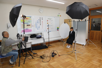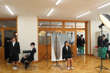 •  3月5日(木)、1~2年生は来年度に向けて(中学生)身分証明書の写真撮影を行いました。この一瞬が証明書になって使われるということでやや緊張しながら、精一杯のよい表情をつくっていました。証明書は4月以降に配布する予定です。