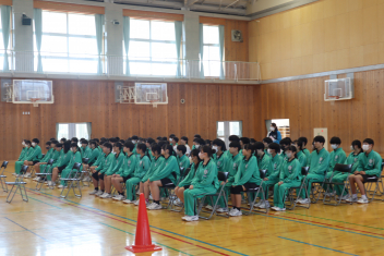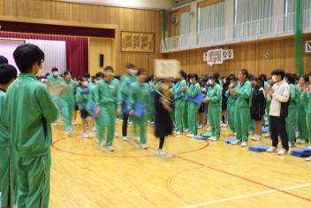 •  3月11日(水)午後、「3年生を送る会」を行いました。生徒会が主催し、クイズ、全校バルーン・リレー、思い出スライドの上映をしました。1~2年生は心を込めて卒業を間近に控えた3年生に感謝を伝えました。3年生もそれに応え、これからの浜名中を託す気持ちを伝えていました。