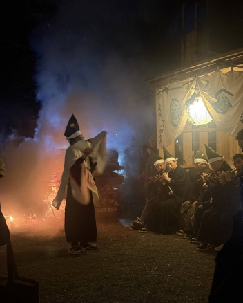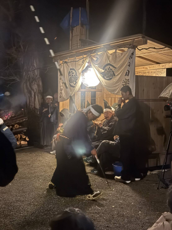 •  水窪町で千年以上にわたり受け継がれている国の重要無形民俗文化財『西浦田楽(にしうれ でんがく)』が3/6~3/7にかけて夜を徹して行われました。浜名中の教務(主幹教諭)のお宅が数少ない「西浦田楽を継承している家」ということで、毎年、伝統の継承者として舞っているとのことです。今年も浜名中職員が応援(参観)に駆け付けました。この「舞」は「一子相伝」、その家の長男しか継承することができない、ということです。この職員によると伝統を絶やしてはならない、という一心とのことです。この日は、お父様、ご長男とともに夜通し神事を舞っていました。