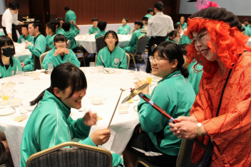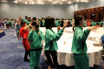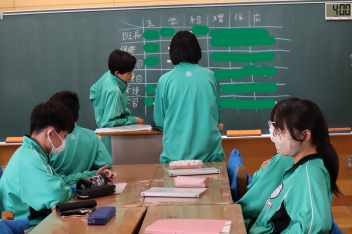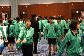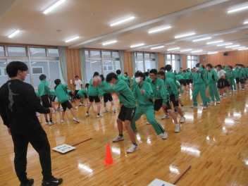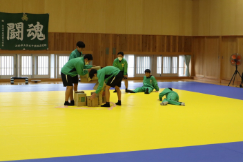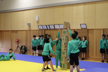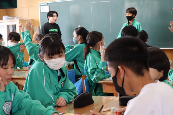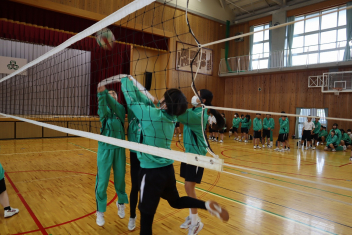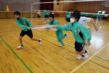 • 2年生が主体となって企画・運営した「ミニ運動会」が行われました。生徒たちが自分たちで考えたユニークな種目の数々に、会場は大盛り上がり!箱を積み上げる高さを競う「ダンシング箱積み」では、箱が高く積み上がったり、惜しくも崩れたりするたびに、周囲から大きな歓声と拍手が沸き起こっていました。一方で、対照的だったのが「ボール送り」です。一秒を争う真剣勝負に、生徒たちは全神経を集中。ゴールする瞬間まで話し声ひとつ聞こえないほどの静寂が広がり、その緊張感こそが団結力の証のように感じられました。スポーツを心から楽しみ、学級の絆がより一層強まった、実りある1日となりました。