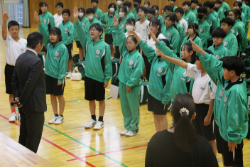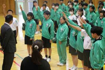 明日、1年生は入学後初めての学外活動となる「遠足」に向かいます。本日、その事前学習として出発式が行われました。式では、各クラスの学級代表が、遠足で達成したいクラス目標を力強く宣誓しました。仲間との親睦を深めるのはもちろん、公共の場でのマナーを学ぶ絶好の機会でもあります。初めての校外行事を通して、クラスの団結力がさらに高まることを期待しています。
