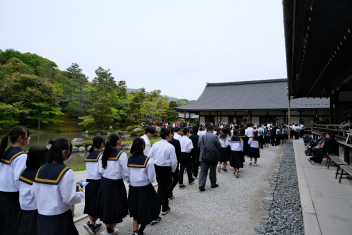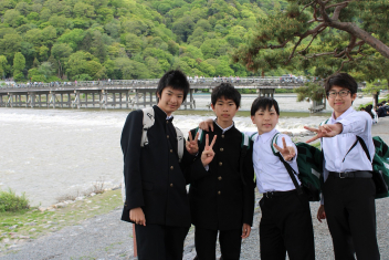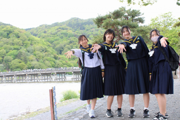 • 修学旅行もいよいよ最終日を迎えました。本日は京都・嵐山を散策しています。 学級ごとに分かれ、凛とした空気が漂う「竹林の小径」を歩いたり、鈴虫の音色に心癒される「鈴虫寺」、美しい庭園を擁する「天龍寺」などを拝観しました。今はちょうど、新緑が芽吹き始めた瑞々しい季節。満開のサクラとはまた一味違う、生命力あふれる緑のグラデーションに、京都の新たな魅力を再発見する旅となっています