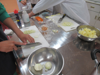 • 大切に育ててきた野菜がついに収穫の時期を迎え、今日はみんなでカレーライス作りに挑戦しました。慣れない手つきながらも、自分たちで収穫した野菜を包丁で一つひとつ丁寧にカット。お鍋いっぱいのカレーも、あっという間にお腹の中へ消えていきました。