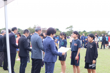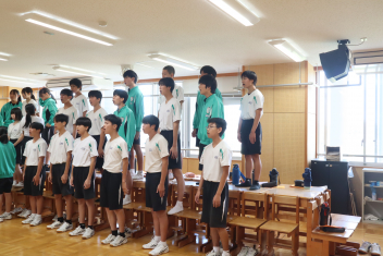 その他、今日は中体連の表彰があり、浜名中が夏季大会と新人大会で優秀な成績をおさめ、表彰されました。(浜松地区全校の部活動の全種目の結果を得点化した順位) 【浜名中の表彰】●夏季大会 男子2位 女子6位 ●新人大会 男子2位 女子5位
