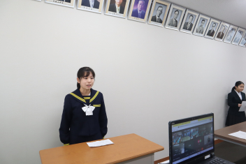 •  12月19日(金)午前、2学期の終業式を行いました。まず、部活動や各コンクールの表彰を行い、各学年の代表生徒による2学期を振り返るスピーチがありました。1年生の代表生徒からは「3学期が終われば私たちも2年生になります。成長した姿で後輩を迎えられるようにしたいです。」と力強く決意が述べられました。