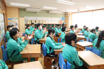 •  12月17日(水)、2学期も残すところ3日となりました。1年6組の給食では、とても素早く配ぜんの準備を済ませ、マナーよく食べていました。落ち着いた雰囲気に、この1年の成長を感じます。1月の校内百人一首大会に向けてクラス団結して練習にも励んでいるとのことです。6組をはじめ、他の1年生のクラスも同じく落ち着いた学校生活を送っています。令和8年に向けて、さらに力を蓄えてほしいと思います!