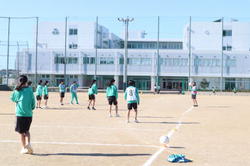 •  12月16日(火)午前、青空のもと、生徒たちが元気よく体育で体を動かす様子が見られました。今週で2学期が終わり、来週からは冬休みに入りますが、学校生活の中で仲間と体を存分に動かして健康的な体力をつけてほしいと思います。