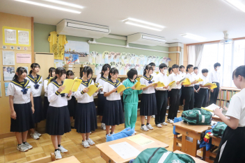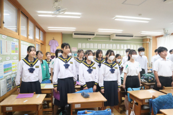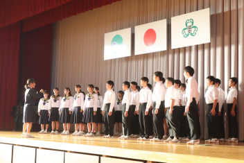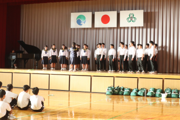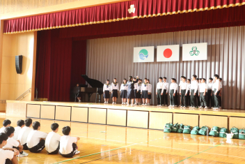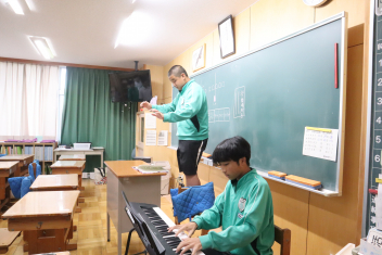 •  合唱コンクールを1週間後に控え、音楽の授業でも合唱の練習が佳境に入っています。2年生では、男女のハーモニーを調整する段階に入っていました。3年生では、全体の仕上げや調整に入っているようです。さすが3年生だけあり、聴き手の鳥肌が立つような心を揺さぶるハーモニーが随所にちりばめられています。