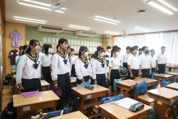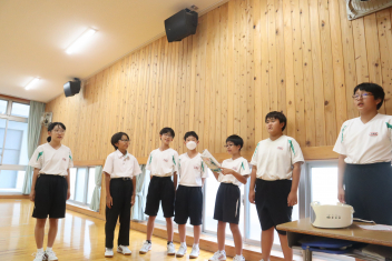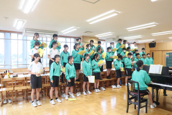 •  合唱コンクールまであと2週間、各クラスの練習にも熱が入ってきています。朝、昼休み、放課後の時間と全校で練習に励んでいます。1年5組では、ホールでパート別に音程を取る練習をしていました。3年生では、すでに全員で音を合わせる練習に入っていました。合唱には各クラスのカラーが表れていきます。ぜひ、仲間とよい合唱をつくり上げてほしいと思います。