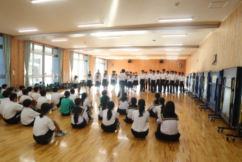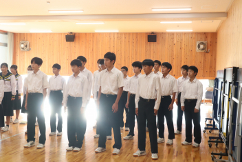 10月22日(水)午後、1年生は合唱コンクールに向けて本番さながらに全クラスが集まって『プレ合唱コンクール』として合唱を聴き合いました。他クラスの合唱曲を始めてよく聴き、同級生の頑張りをたたえ合っていました。本番まであと1週間ちかく、まだまだよい歌声めざして頑張ってください!