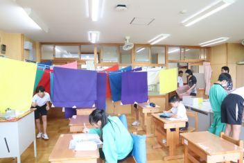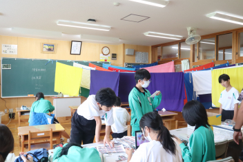 体育祭が終わり今週は落ち着いた学校生活を送っています。10月15日(水)10・11組では、体育祭で使用した団旗を洗濯してくれました。校内に9集団の旗を干す場所がなく、考えた末、教室にロープを張って上手に干してくれました。来年もきれいな状態で旗を使うことができます。ありがとうございます!