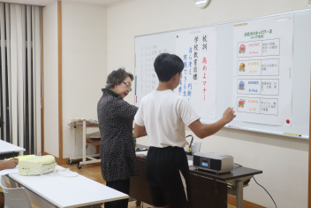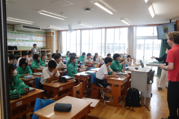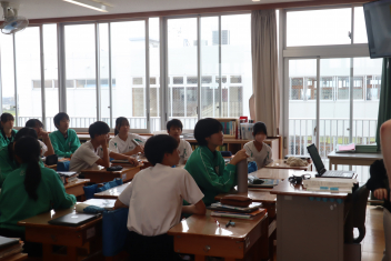 •  浜名中では体育祭が終わり、勉学に励む秋ということで授業の充実に取り組んでいます。各教科で教員の研修として互いに授業を公開し、授業技術の図ります。2年7組の英語科授業では、防災と関連させて危険を知らせる英単語や、英文の構成を学んでいました。ALTによる発音練習や海外の文化や習慣の説明も、生徒たちの興味・関心を高めていました。