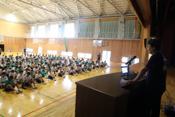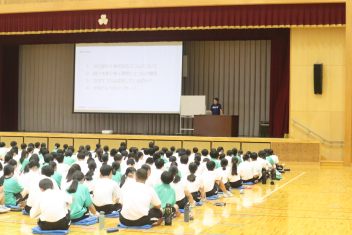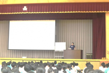 •  10月16日(木)午後、2年生は、地元の上場企業「エコム」社長の高梨智志(たかなし・さとし)さんを講師にお迎えし、お話をうかがいました。「エコム」で取り組んでいる最新のカーボンニュートラルのこと、社内が活力に満ちていること、リーダーの在り方など幅広いお話をいただきました。特に、地元企業として浜松の活性化や、地元の若者を大切にしているとのことです。最後に、社長から「前向き思考」の大切さと、ご自身の中学時代についてのお話があり、生徒たちは興味深そうに聞き入っていました。今回のお話を、今後の進路選択に生かしてほしいです!