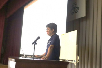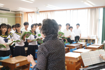 •  10月17日(金)放課後、合唱コンクールに向けた第3回目の指揮者講習会を開催しました。講師は遠州婦人合唱連盟理事長 斉藤ひろみ 先生です。斉藤先生には昨年度からご指導をいただいています。今日は3年生を対象に、クラスの合唱曲に合わせた個人レッスンをしていただきました。3年生は難しい曲が多いですが、丁寧にご指導いただきました。