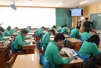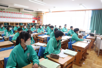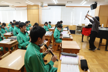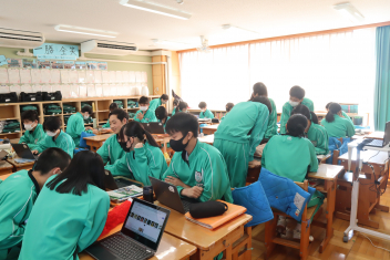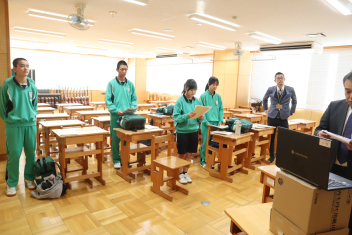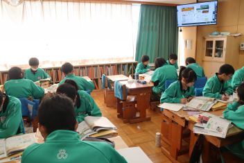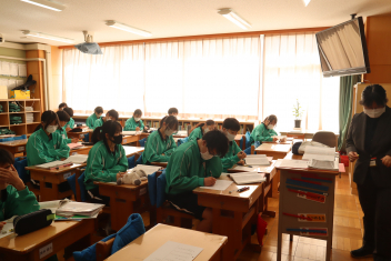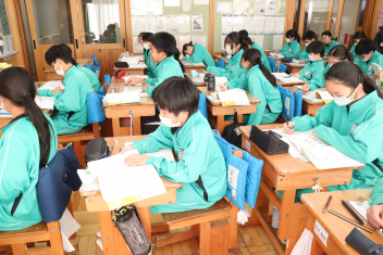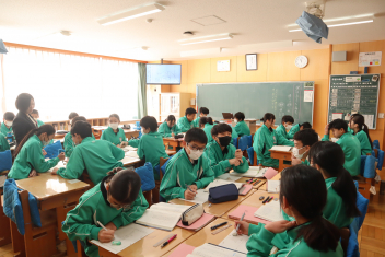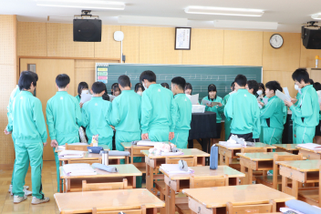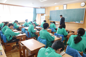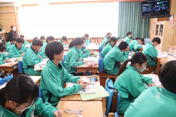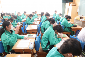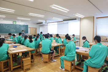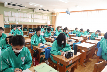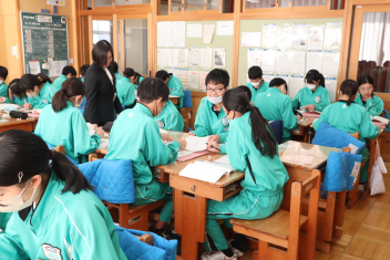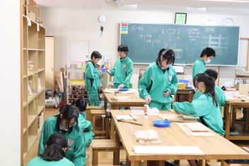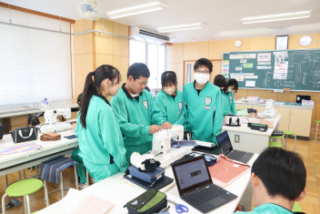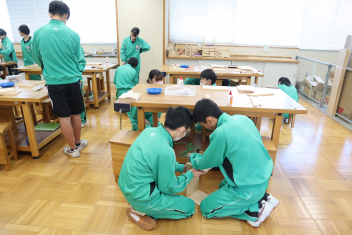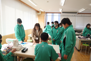 2年生の技術科の授業では、災害時に使用できるラジオの制作や、プログラミンの学習に取り組んでいます。ラジオ制作では、金属部分が通電するようにはんだごてで接続しています。生徒たちは自分の手で作る経験があまりないのか、かなり慎重に取り組んでいます。プログラミングの学習では、画面上の「カメのアイコン」をプログラムで縦横に動かす入力に取り組みました。どういう指令を打ち込めばどう動くのか、頭の中で考えながら取り組んでいました。技術科では、木工金工などの物作りから、プログラミングなどの情報技術分野まで幅広い学習を扱っています。