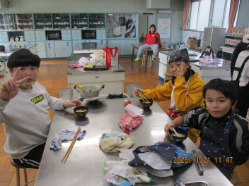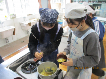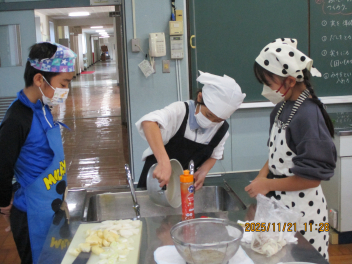 • 5年生は、家庭科「食べて元気に」の学習で調理実習を行いました。