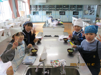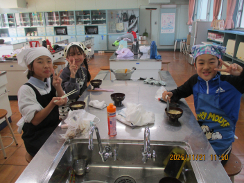 だしを上手に取り、みそ汁づくりに挑戦しました。