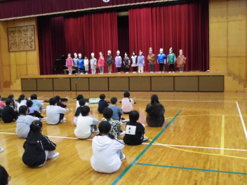 •  28日(金)の「夢いっぱい発表会」に向けて、体育館でのステージ練習が始まりました。今日は、早速、4年生が舞台の上で練習に励んでいました。1年生の教室では、衣装づくりをしていました。他の学年も練習の成果を見ていただけるように頑張っていきます。発表を楽しみにしていてください。
