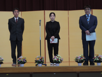 今日は、新2~6年生が集まり、体育館で着任式、新任式、始業式を行いました。