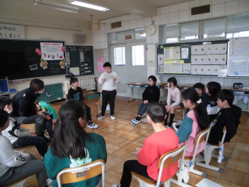 • 4~6年生は、クラブ活動で、講師の先生をお招きして「モルック」を行いました。