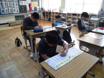 • 3~6年生は、書写の学習で「書き初め」を行いました。