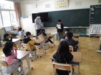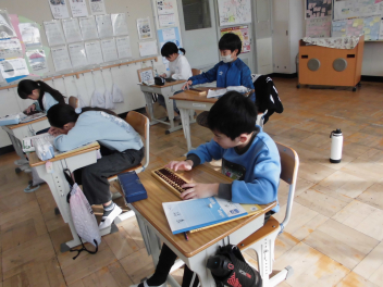 2時間目以降は、学級活動で冬休みの思い出を発表し合ったり、新出漢字やそろばん等の学習に取り組んだりしました。
