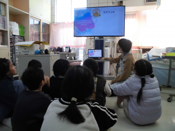 3・4年生は、「かぜに負けない食べ物」5・6年は「まごわやさしい」をテーマに、体によい食べ物やよりよい摂取の仕方について学びました