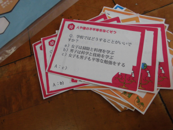 「SDGsすごろく」を使って、クイズを出題しながら「SDGs」についての理解を深めました。