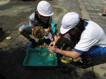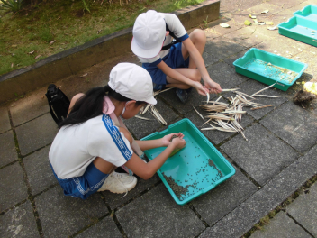 • 3年生は、理科「植物の育ち方」の学習で、花が咲いた後の植物の様子を観察しました。