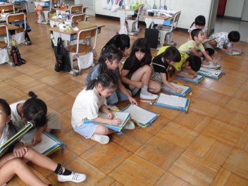 子供たちは、作品を見せ合いお互いのよいところを見つけました。