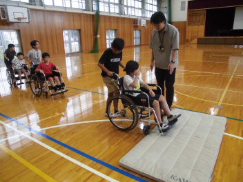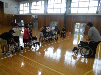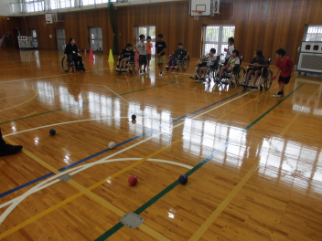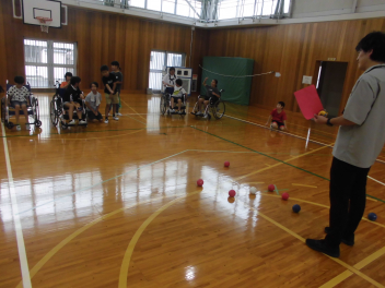 「ふくしってなんだろう?」の講話や車椅子ユーザー職員からの話を聞いたり、車椅子やボッチャの体験をしたりして、福祉についての理解を深めました。