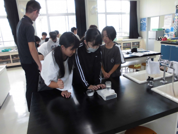 グループで協力しながら、水に食塩を溶かした後の水溶液の重さはどうなるのかを調べる実験を行いました。