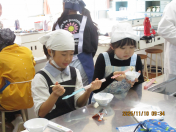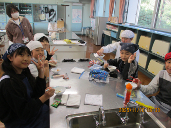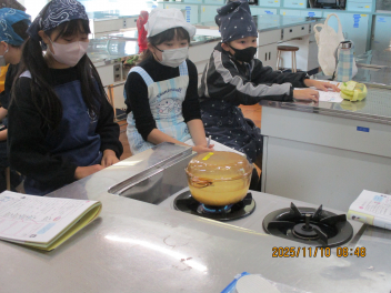 • 5年生は、家庭科「食べて元気に」の学習で、調理実習を行いました。