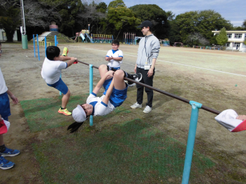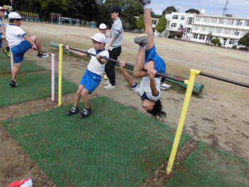 • 3年生は、体育の学習で「鉄棒運動」を行いました。