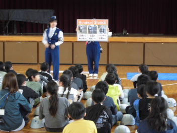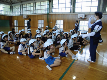 交通安全教室が行われました。1・2年生は、正しい道路の歩き方を交通指導員の方に教わった後、実際に学校前の道路を歩いてみました。入学したての1年生を世話する2年生を見て、とても頼もしく感じました。周りをよく見ること、道路で広がらないこと、横断歩道を渡るときには手を挙げることなど、大切なことを教えていただきました。ボランティアの方にも御協力いただきました。ありがとうございました。