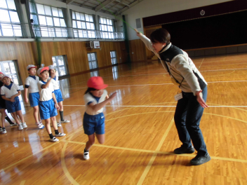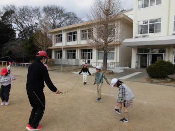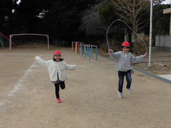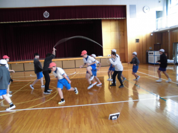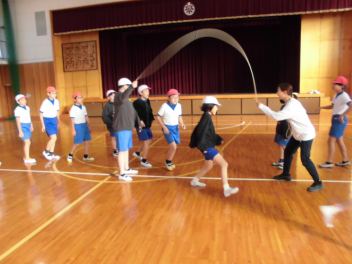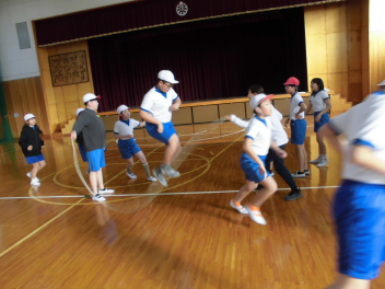 昼休みには、1・2年生の子供たちが先生や友達と一緒に、いろいろな跳び方の練習をしていました。