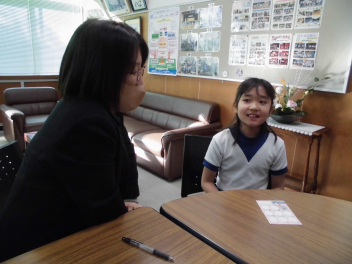 校長室で「花ちゃん賞」「読破賞」の表彰を行いました。