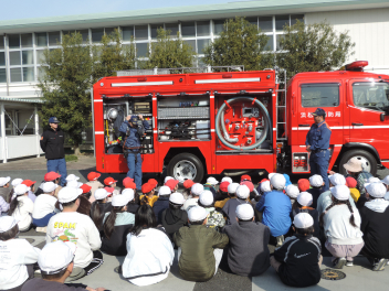 後半は、消防ポンプ車の装備を見たり、消火の仕方についてお話をうかがったりしました。